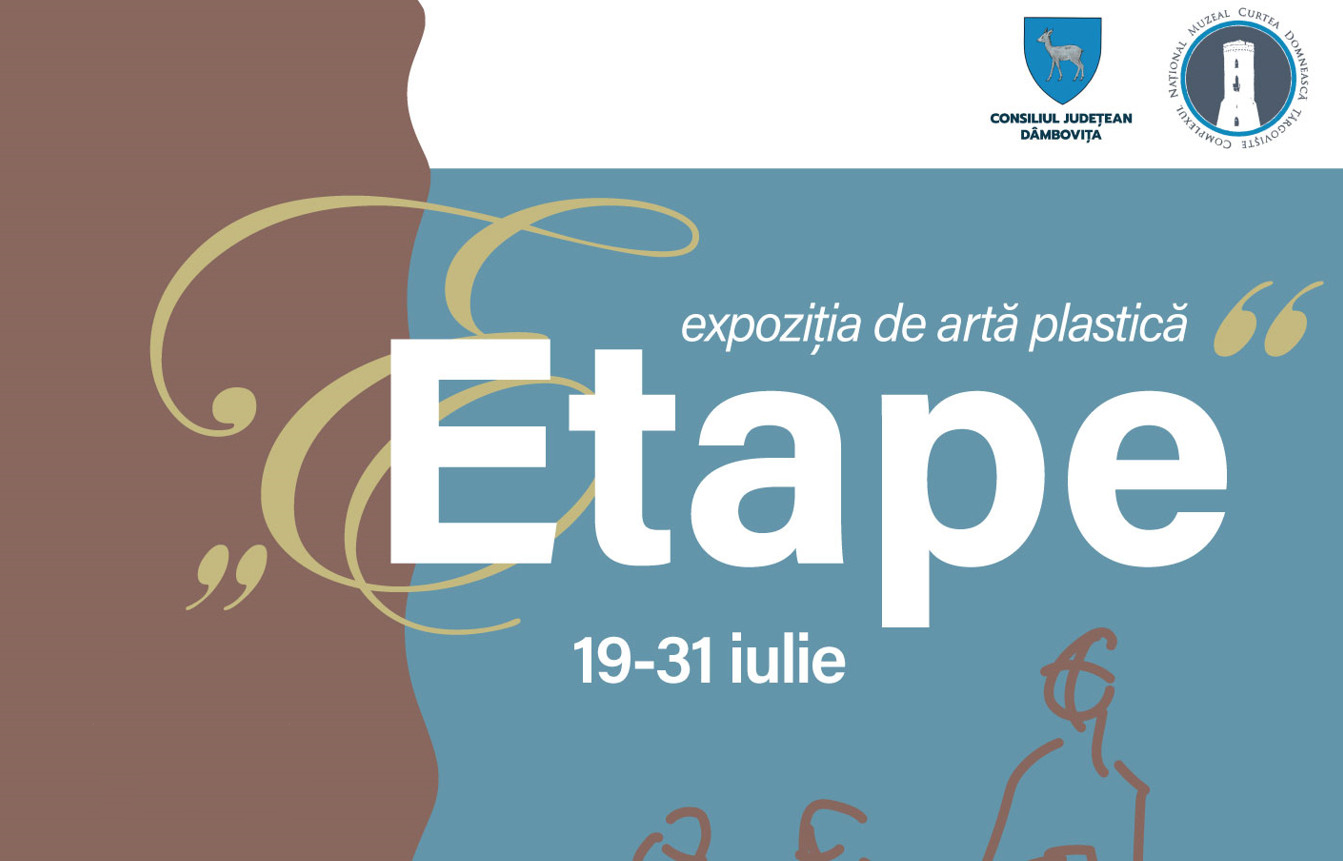 Consiliul Județean Dâmbovița, prin Complexul Național Muzeal „Curtea Domnească” Târgoviște, vă invită să vizitați, începând cu data de 19 iulie 2022, expoziţia de artă „ETAPE”, a tinerelor Alexandra Năstase și Miruna Neguț, care va fi deschisă oficial astăzi, la ora 15:00, la parterul Muzeului de Artă din Târgovişte.