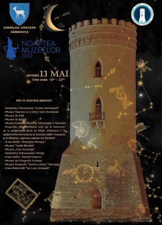 Nu ratați Noaptea Muzeelor în județul Dâmbovița! Consiliul Județean Dâmbovița, prin Complexul Național Muzeal „Curtea Domnească” Târgoviște, organizează sâmbătă, 13 mai 2023, a XIX – a ediţie a evenimentului cultural „Noaptea Muzeelor”, invitând publicul să descopere expozițiile muzeelor într-un mod inedit, făcând o plimbare nocturnă prin istoria și arta judeţului Dâmboviţa.