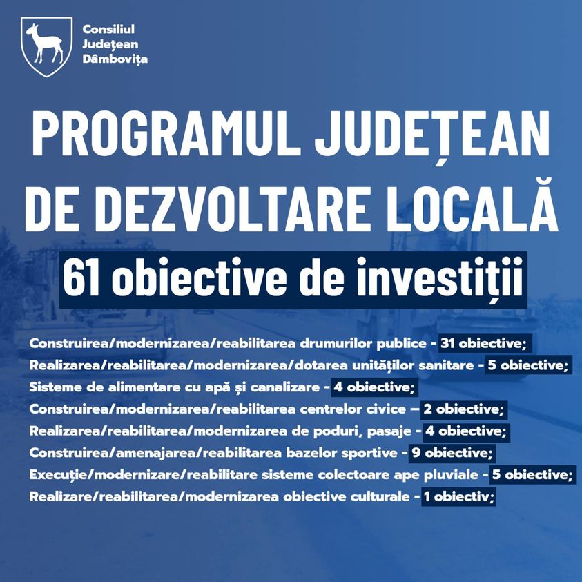 Acestea sunt proiectele primăriilor dâmbovițene pe care Consiliul Judeţean Dâmboviţa le finanțează anul acesta prin PJDL. “ a afirmat președintele CJ, Corneliu Ștefan