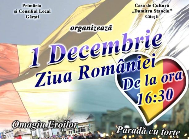 1 Decembrie, tradiționala paradă cu torțe la Găești, administrația locală condusă de edilul Gheorghe Grigore vă invită pe 1 Decembrie să petreceți o după-amiază minunată. De la ora 16:30, vom aduce un pios omagiu Eroilor, în cadrul unei ceremonii oficiale, care va avea loc la Monumentul Eroului Necunoscut.