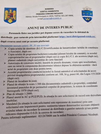 Edilul Dorinel Soare a amintit și documentele care sunt necesare: ” Copia actului de identitate (B.I./C.I), copia actului de proprietate închiriere /comodat (aferent locului de consum), cu acordul coproprietarilor sau al proprietarilor (după caz) și copie B.I./C.1. ale acestora (după caz), planuri cadastrale (după caz);extras de carte funciară, autorizația dc construire imobil, însoțită de piesele desenate, vizate spre neschimbare, care au intrat în componența documentației tehnice depuse la obținerea acesteia – dacă actul de proprietate este doar pentru teren; acordul proprietarului conductelor, acordul în formă autentică al solicitantului de acces privind despăgubirea proprietarului conform art. 108, lit g, punct 66, din Legea 155/2020 (după caz); planul de încadrare în zonă; planul de situație la scara 1:5OO din documentația cadastrală a proprietății, conținând inventarul punctelor dc pe perimetrul corpului dc proprietate, în sistem dc coordonate Stereografic 1970 (după caz); plan de situație 1:2OOO; planul anexă la AC și PUZ/PUD, în situația în care solicitantul de racord este dezvoltate imobiliar; mandatul (in situația în care solicitantul este reprezentat de mandatar) prin care solicitantul este împuternicit pentru: susținerea tuturor demersurilor necesare obținerii avizului tehnic de racordare la sistemul de distribuție a gazelor naturale și/sau pentru ridicarea răspunsului O.S.D. la cererea de racordare.”