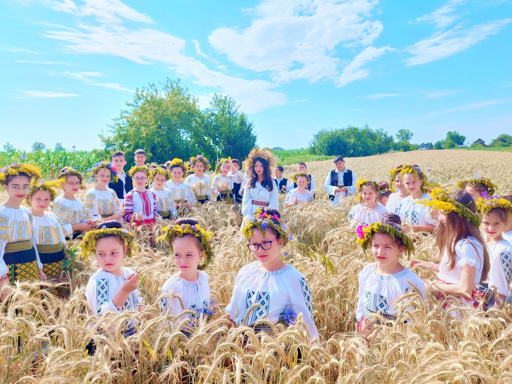 Tinerele fete cu parul bălai din comuna Nucet, purtând costumele populare, însoțite de băieți, în carele trase de cai, au mers în lanul bogat de grâu pentru a face coronițe și a-și alege Dragaica.