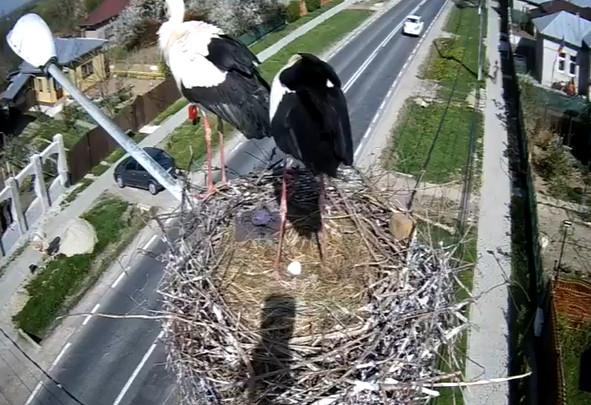 Înaripatele şi-au reamenajat cuibul deja existent pe un stâlp monitorizat video. Graţioasele păsări pot fi urmărite la orice oră, datorită camerei instalate pe stâlp, de administraţia de la Răcari.
