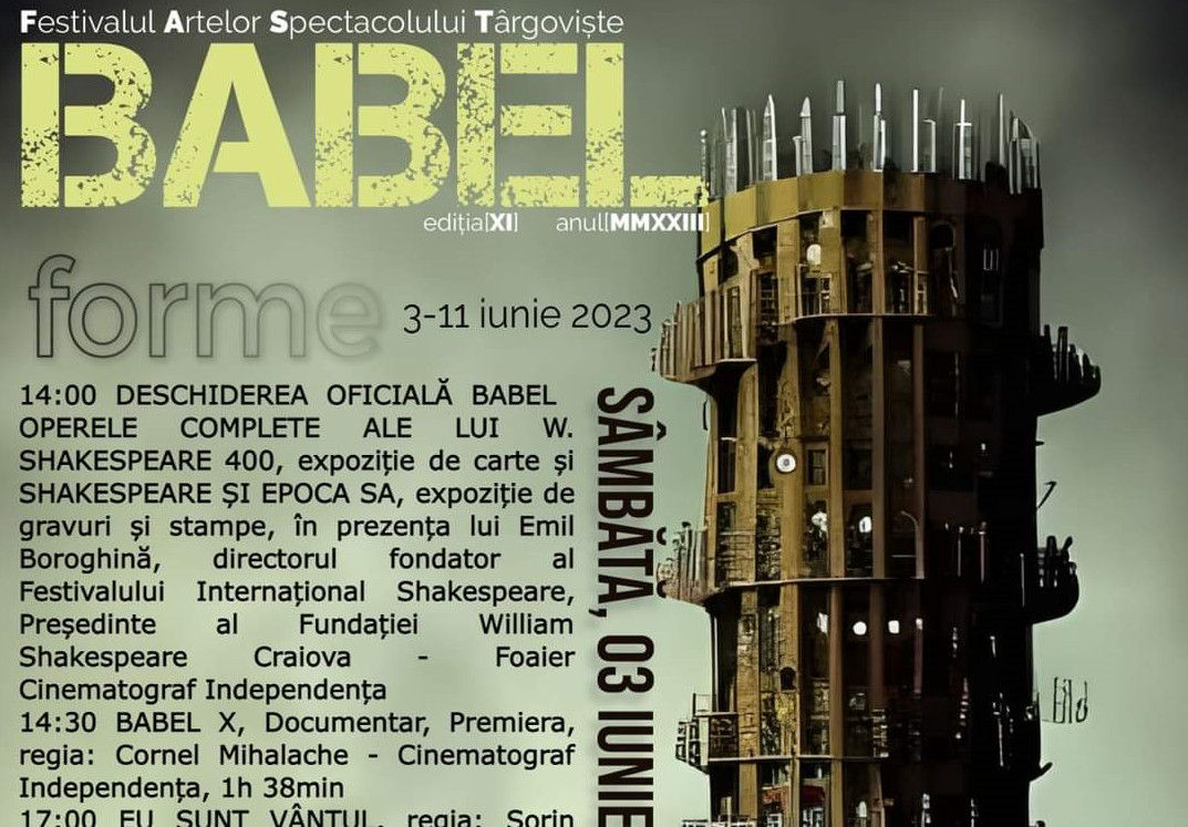 Festivalul Internațional al Artelor Spectacolului BABEL, organizat de Teatrul Municipal Tony Bulandra din Târgovişte şi ajuns la cea de a XI-a ediție, începe mâine, 3.06.2023.