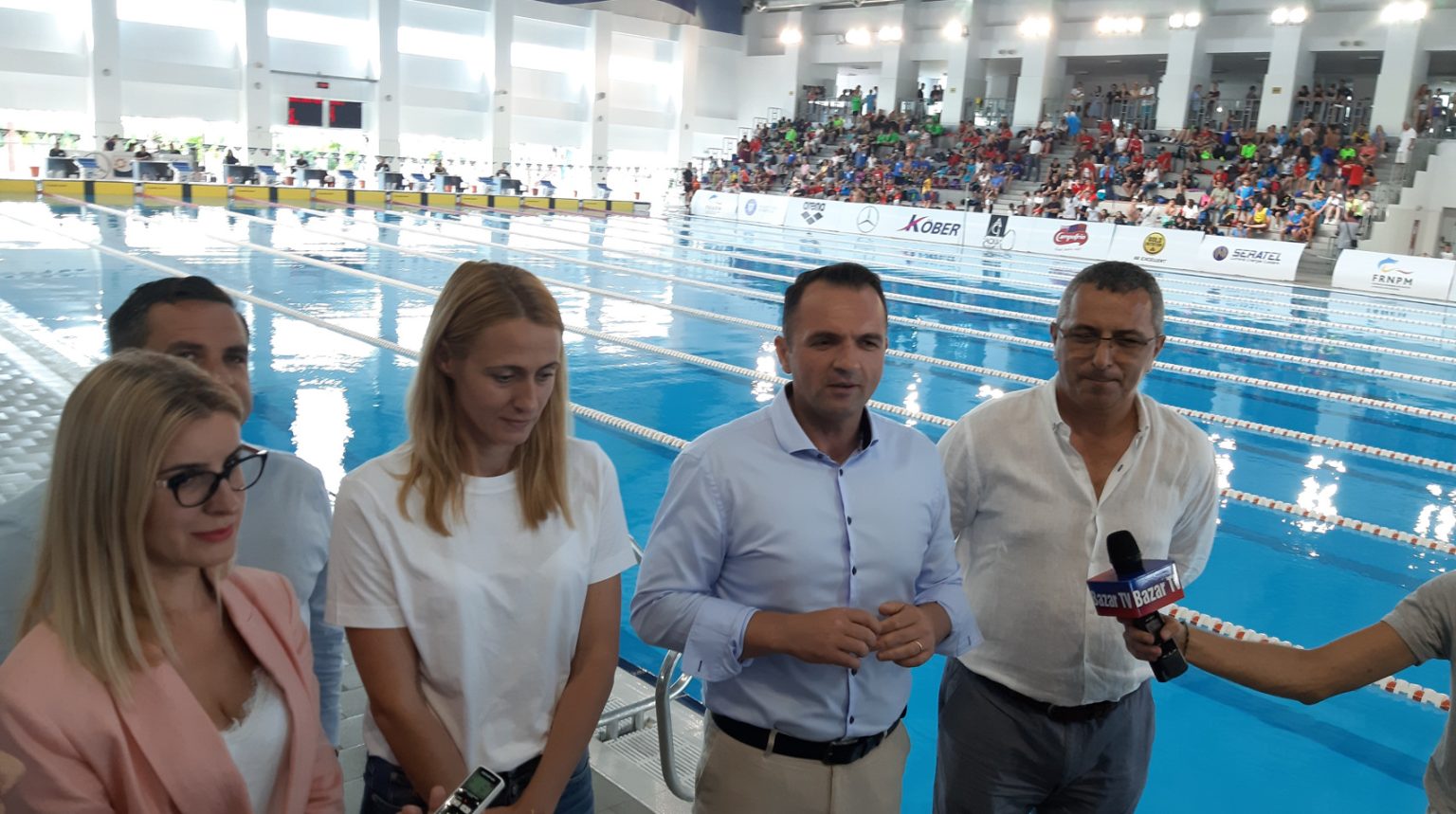 Președintele Federației  Române de Natație,  Camelia POTEC a susținut o conferință de presă alături de primarul municipiului Târgoviște, Cristian Stan.
