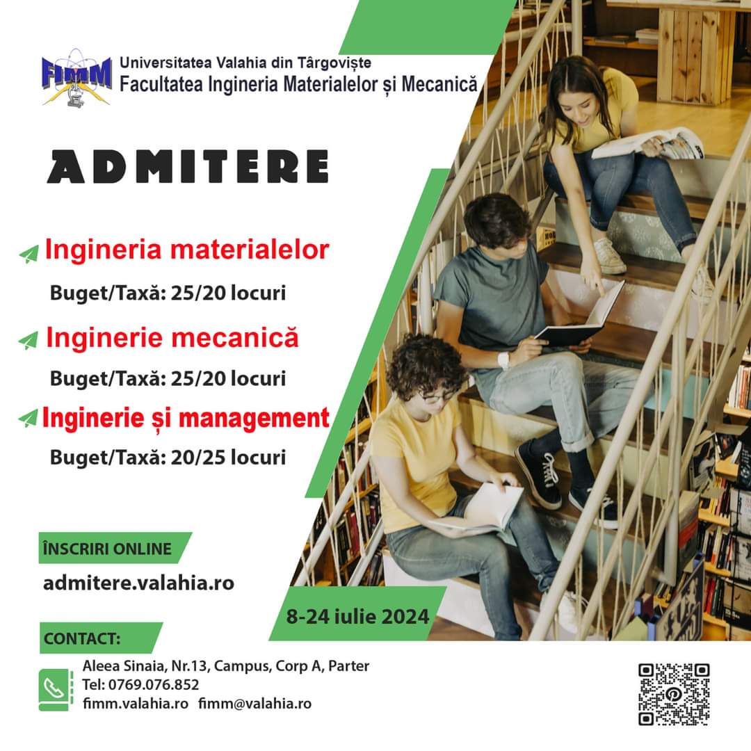 Înscrieri la Facultatea de Ingineria Materialelor și Mecanică de la Universitatea „Valahia” din Târgoviște pentru anul universitar 2024-2025.