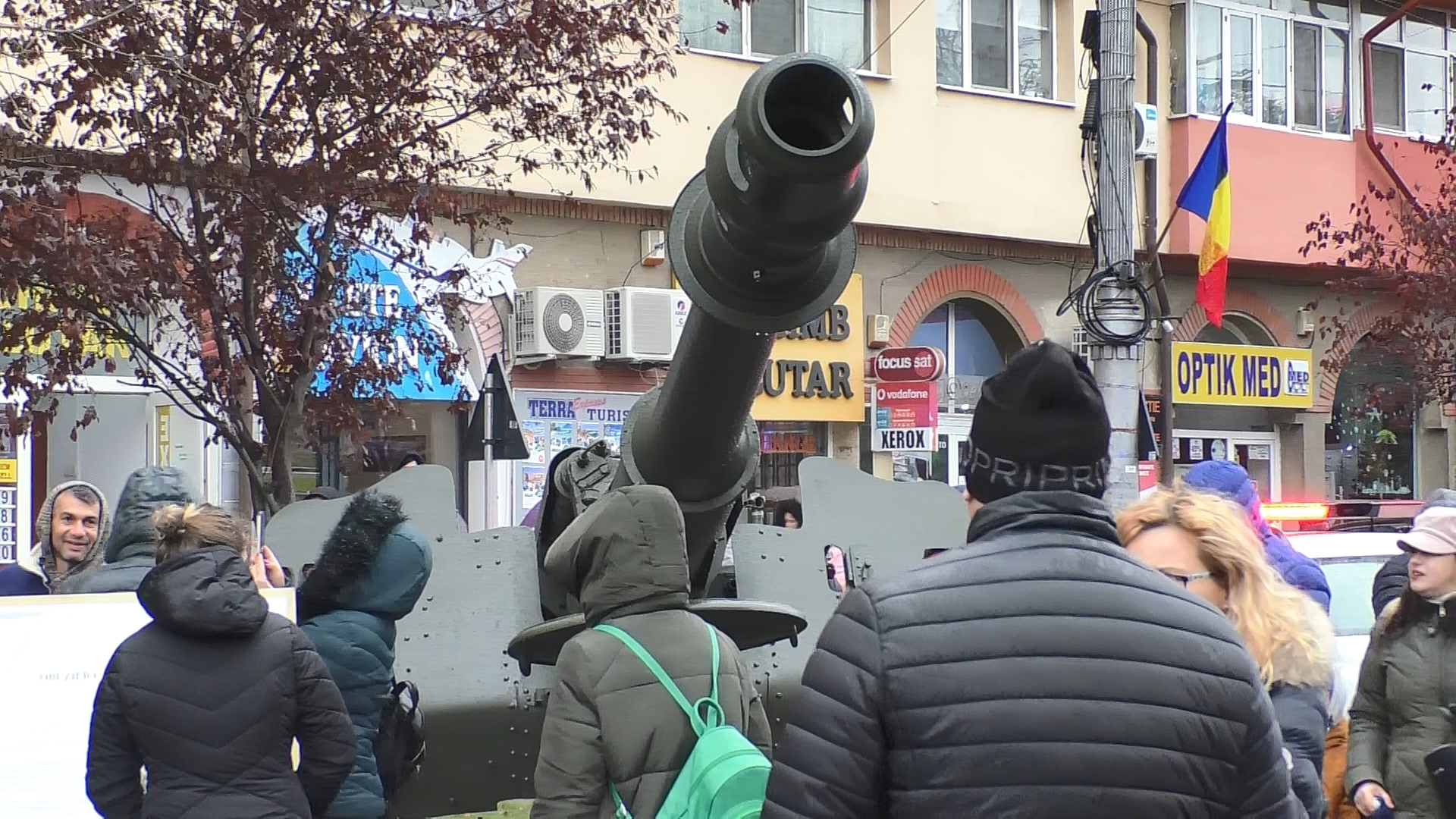La Târgoviște, 1 Decembrie-Ziua Națională a României, sărbătorită cum se cuvine, tehnica militară admirată de târgovișteni,ceremonie militară și religioasă în Piața Tricolorului.