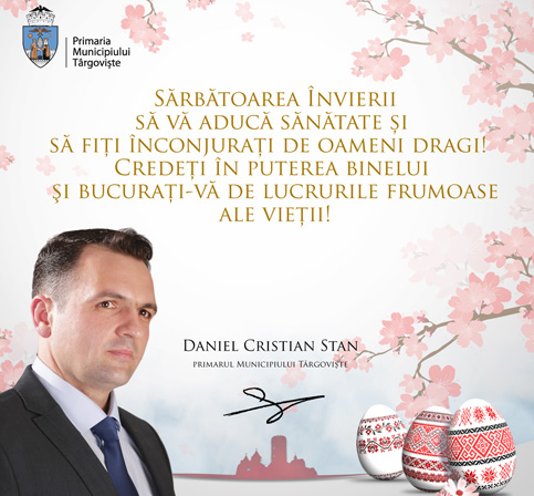 Mesajul primarului municipiului Târgoviște, Daniel Cristian Stan, cu ocazia Sărbătorilor Pascale