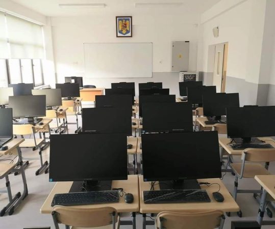 – 67 de cabinete pe discipline, cabinete de asistență psihopedagogică și săli de sport, cu mobilier, materiale sportive și echipamente digitale;