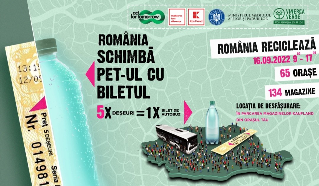 Săptămâna Europeană a Mobilității va fi sărbătorită la nivel național printr-o campanie inedită desfășurată în 65 de orașe din țară – România Schimbă PET-ul cu biletul.