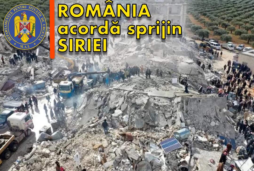 România acordă sprijin Siriei, dată fiind situația generată de cutremurul produs în data de 6 februarie 2023, în Siria, respectiv, solicitarea Republicii Arabe Siriene, prin Mecanismul European de Protecție Civilă, pentru acordarea de asistență internațională, în urma consultării cu președintele României, Klaus Iohannis, astăzi, 9.02.2023, premierul României, Nicolae-Ionel Ciucă a convocat, în sistem hibrid, Comitetul Național pentru Situații de Urgență, hotărârea nou adoptată urmărind de o manieră prioritară sprijinirea Republicii Arabe Siriene, prin: