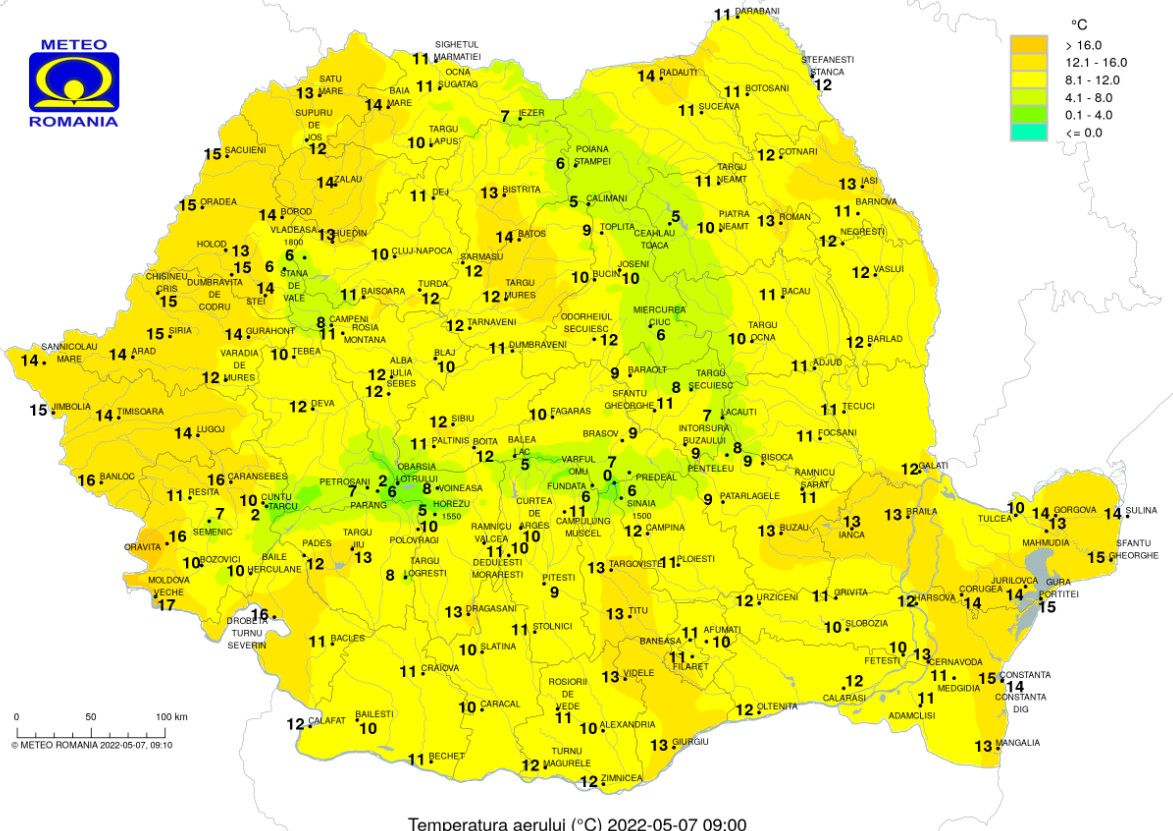 7 mai 2022, vremea va fi însorită, ploile sunt așteptate în noaptea spre duminică, însoțite de un vânt moderat, temperaturile maxime ale zilei se vor încadra între 18- 20 de grade, iar valorile minime nu vor scădea sub 7 grade Celsius.