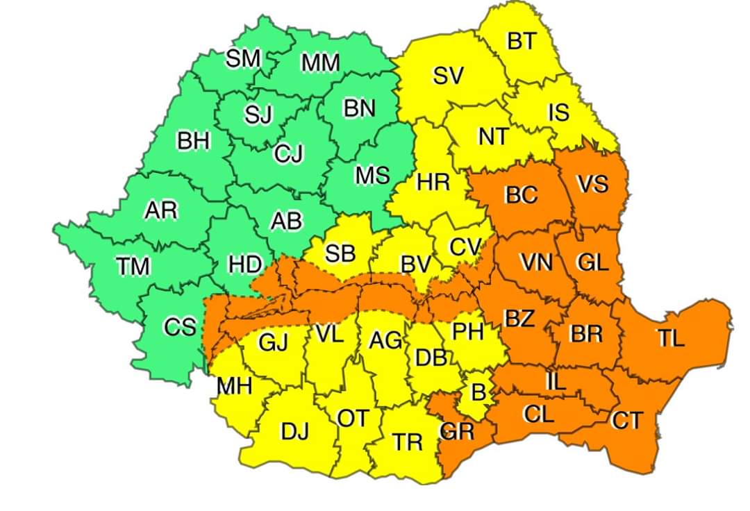 În funcţie de evoluţia şi intensitatea fenomenelor meteorologice, Administraţia Naţională de Meteorologie va actualiza prezentul mesaj.