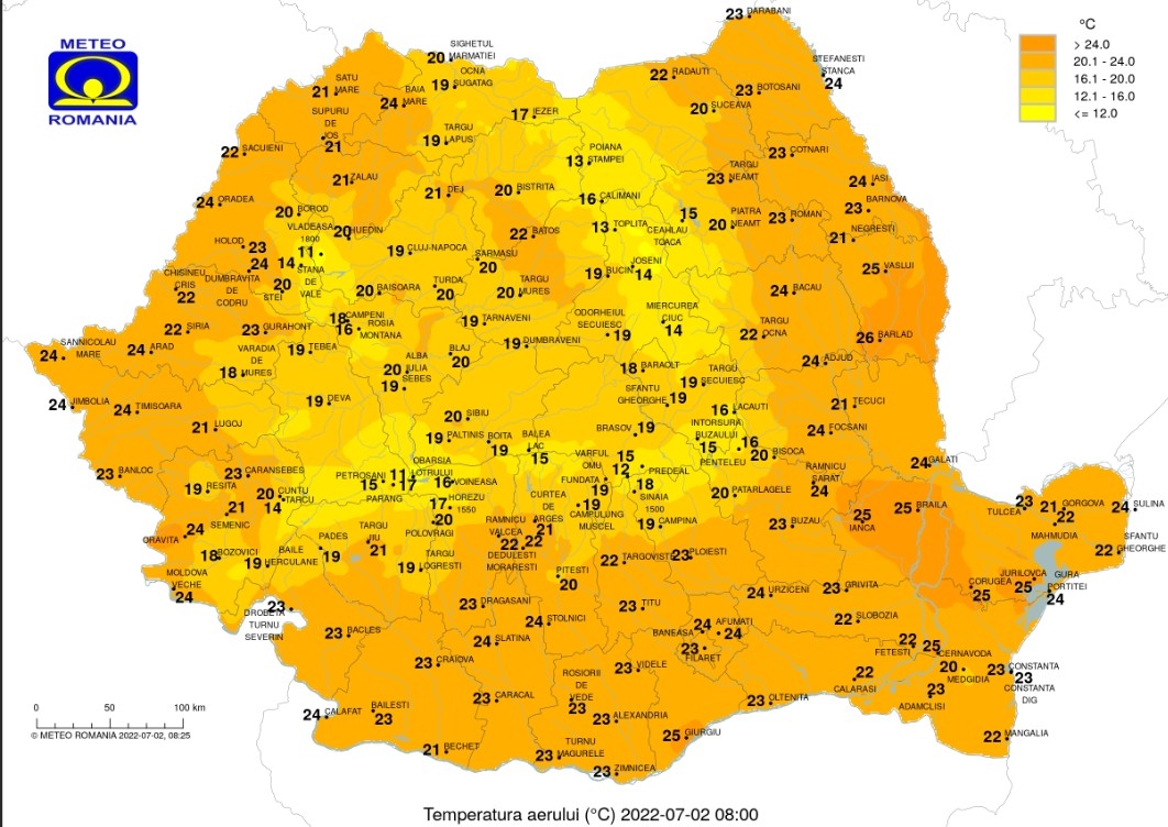 Totodată, meteorologii au precizat că în a doua parte a zilei de sâmbătă (2 iulie) vor fi manifestări de instabilitate atmosferică accentuată în jumătatea de vest a țării și la munte.