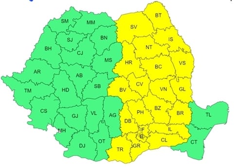 ATENȚIONARE METEOROLOGICĂ COD GALBEN de PLOI TORENȚIALE pentru tot județul Dâmbovița,interval de valabilitate: 05 octombrie 2024, ora 15:00 – 06 octombrie 2024, ora 12:00