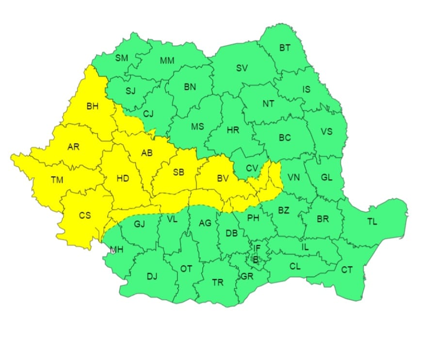 Atenționare meteorologică COD GALBEN de VÂNT, valabilă în perioada 10 februarie 2024, ora 18:00, până la 11 februarie 2024, ora 08:00.