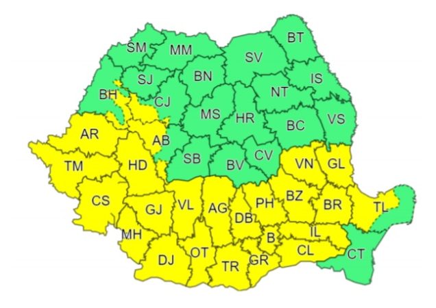 Avertizare meteo COD GALBEN, 28 mai, ora 12:00 – 28 mai, ora 23:00