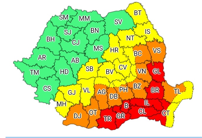 În restul județului se vor înregistra temperaturi maxime în general de 37…39 de grade, astfel că disconfortul termic va fi accentuat. Indicele temperatură-umezeală (ITU) va depăși pragul critic de 80 de unități.