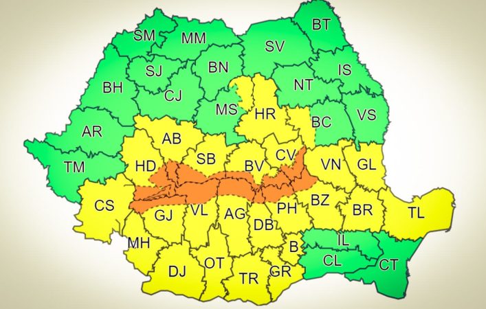 COD GALBEN de FURTUNI în județul Dâmbovița, Administrația Națională de Meteorologie a actualizat mesajele de avertizare meteorologică emise pentru județul Dâmbovița.