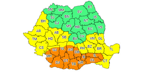 Notă: Valul de căldură și disconfortul termic vor persista, local, îndeosebi în regiunile sudice și în următoarele zile.