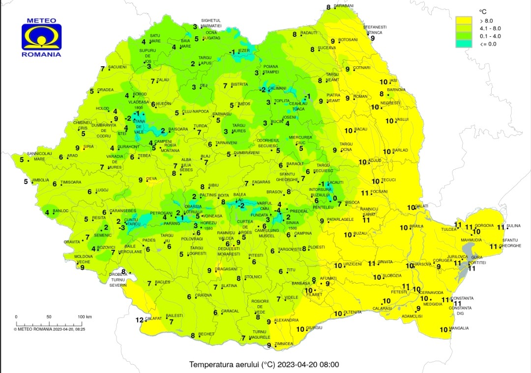 Cum va fi vremea astăzi, 20 aprilie 2023, va ploua pe arii relativ extinse în regiunile sudice, estice şi în centru şi pe suprafeţe mici în rest.