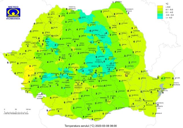 Cum va fi vremea în toată România, 8 martie 2023, temperaturile sunt apropiate de primăvară, însă cerul va fi mai mult noros în vestul, centrul și nordul teritoriului și variabil în celelalte zone.
