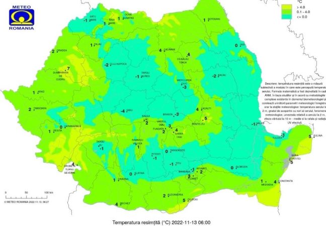 Temperaturile minime vor fi cuprinse între -1 și 8 grade, mai scăzute până spre -4 grade în depresiunile din estul Transilvaniei.