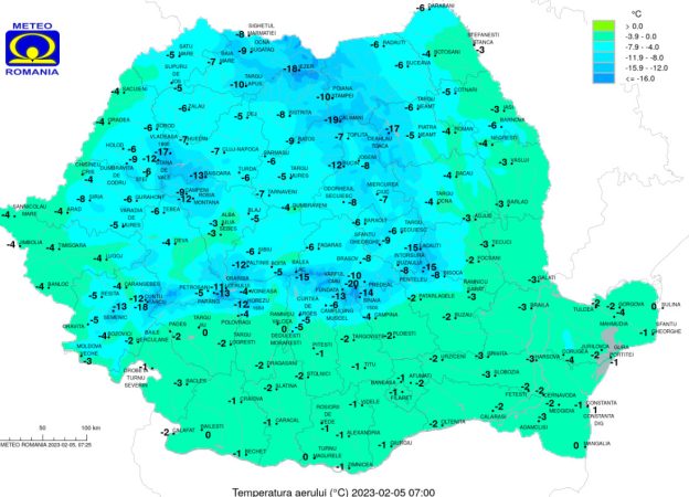 Duminică, 5 februarie 2023, fenomenul de răcire se va accentua în toată țara, vremea va intra într-un proces de răcire și temperaturile maxime vor fi preponderent negative în toată țara și se vor încadra între -7 grade și 1 grad Celsius.