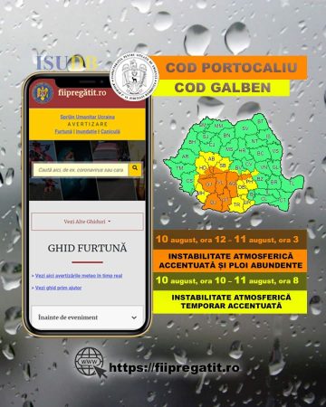 În intervalul 10 august, ora 10:00 – 11 august, ora 08:00 în județul Dâmbovița vor fi perioade cu instabilitate atmosferică accentuată.