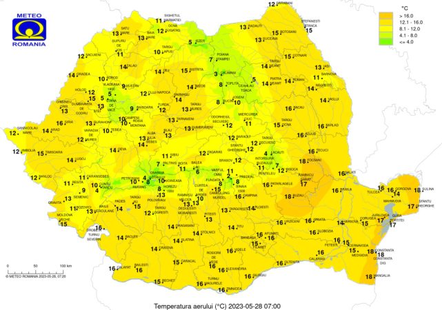 Temperaturile maxime se vor încadra între 20 și 27 de grade, iar cele minime vor fi cuprinse între 6 și 17 grade. Izolat vor fi condiții de ceață.
