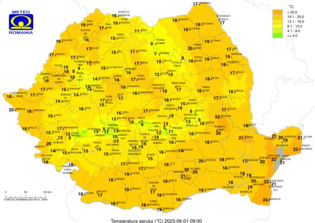 Joi, 1 iunie 2023, vremea continua să fie una instabilă, mai ales în timpul după-amiezii, dar și seara, în special în Banat, Crișana, Maramureș, Transilvania, precum și în zonele montane și submontane din restul teritoriului, unde vor fi înnorări temporar accentuate, descărcări electrice și izolat intensificări de scurtă durată ale vântului, vijelii și grindină.