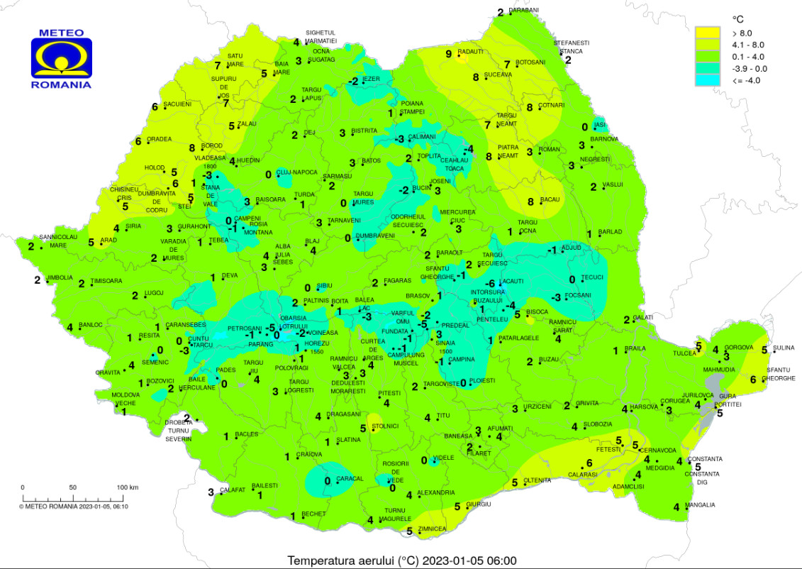 Regimul termic va fi în continuare caracterizat de valori mai ridicate decât cele normale perioadei, cu maxime ce se vor încadra între 6 şi 14 grade şi minime între 0 şi 7 grade.
