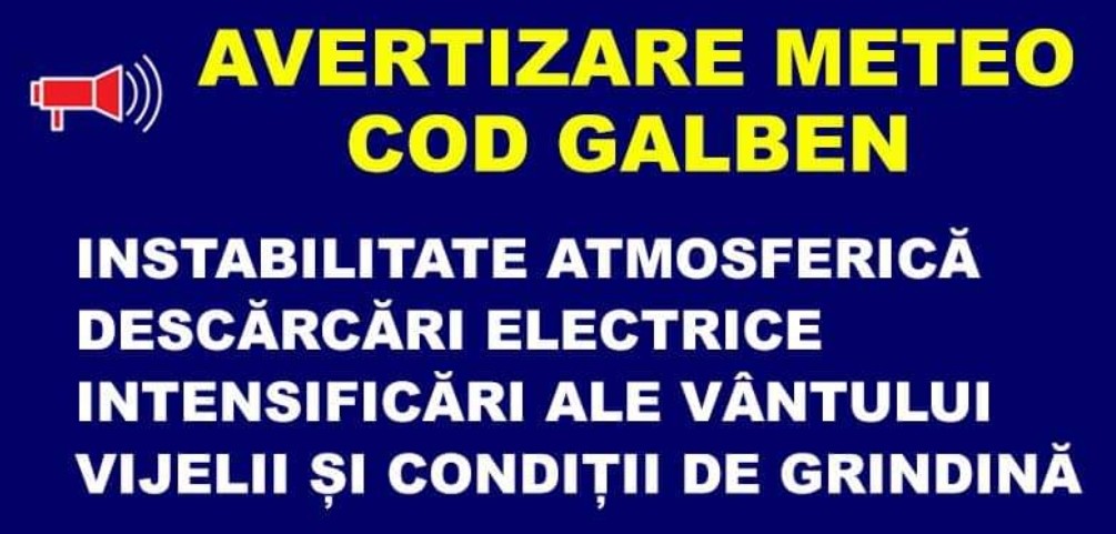 Potrivit meteorologilor se vor semnala descărcări electrice, grindină de dimensiuni mici, averse care local vor acumula (peste) 15…20 l/mp, intensificări ale vântului / vijelie.
