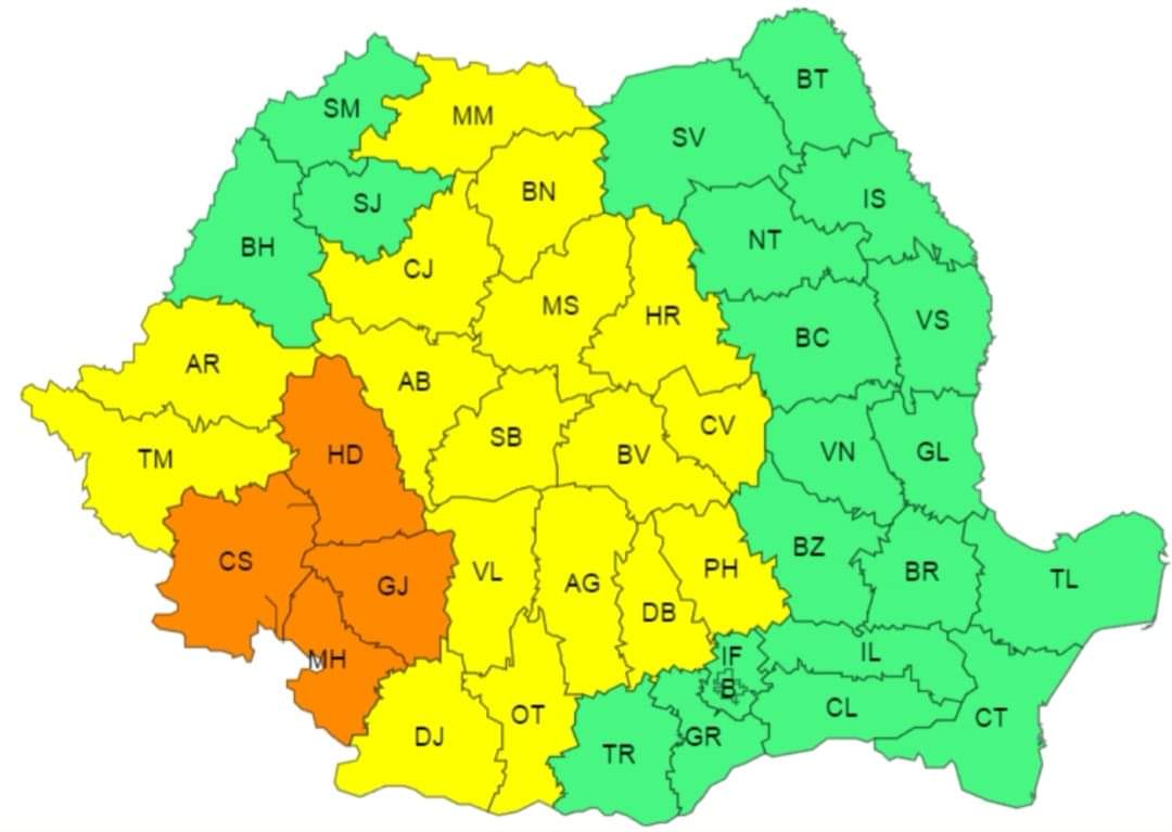 În intervalul menționat vor fi perioade cu instabilitate atmosferică. Aceasta se va manifesta prin averse cu caracter torențial, intensificări ale vântului și pe arii restrânse vijelii (rafale de 50…70 km/h), grindină și descărcări electrice. În intervale scurte de timp sau prin acumulare, cantitățile de apă vor fi de 20…25 l/mp și izolat de peste 40 l/mp.