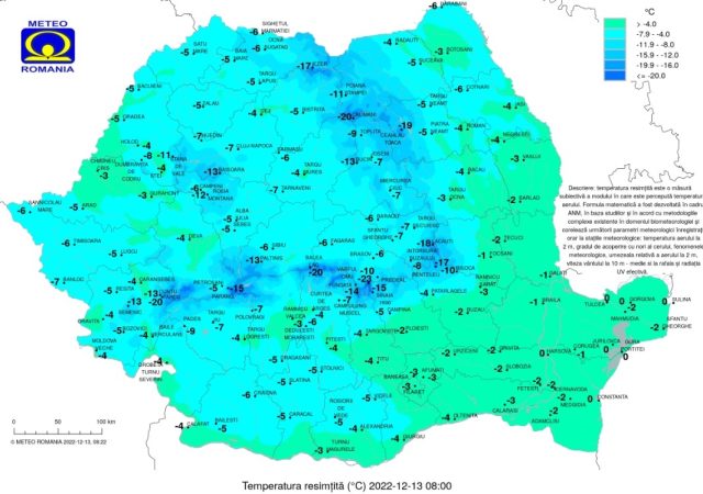 Marți, 13 decembrie 2022, meteorologii anunță că vremea se va răci foarte mult, dacă în zilele de sâmbătă și duminică temperaturile s-au situat peste mediile multianuale, ziua de marți va aduce temperaturi ce se vor situa sub valorile specifice ale acestei perioade din an.