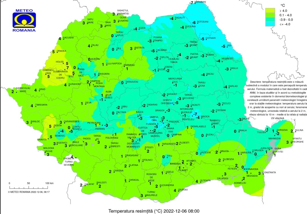 Marți, 6 decembrie 2022, cerul se va menține mai mult noros, în mod special în jumătatea de vest a României.