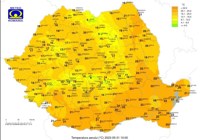 Miercuri, 31 mai, ultima zi de primăvară aduce ploi și descărcări electrice în mai multe localități din ţară, de asemenea, în unele zone, temperaturile vor ajunge la 27 de grade Celsius.