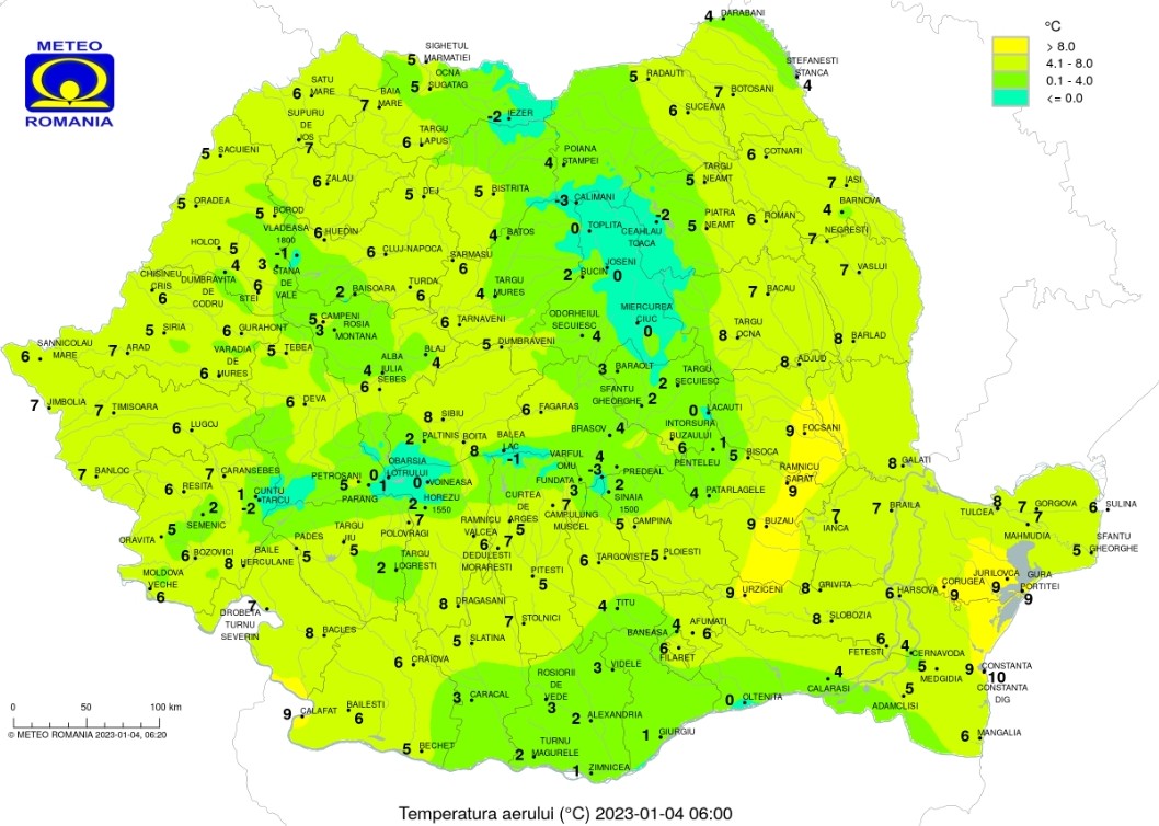 Valorile termice, cu mici variații de la o zi la alta, vor fi în scădere în prima săptămână de prognoză până la medii ale maximelor de 4…6 grade și ale minimelor de 2…5 grade.
