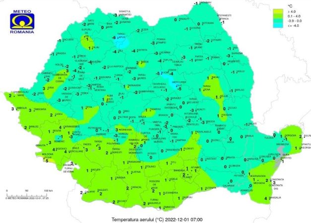 Vântul va sufla slab și moderat. Temperatura maximă va fi de 2-4 grade, iar cea minimă va fi de -3- 0 grade.