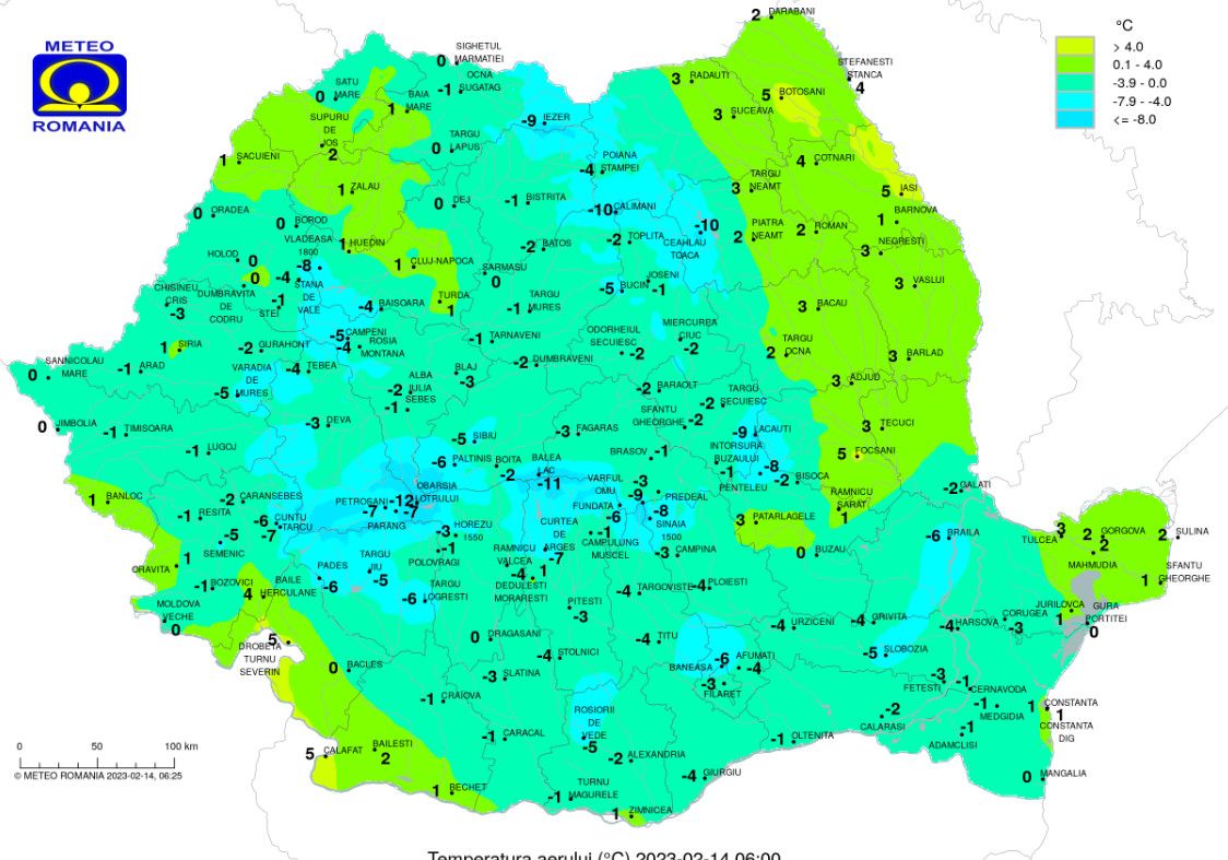 Prognoza meteo, 14 februarie 2023,vremea va fi foarte rece la începutul zilei, cerul va fi variabil, cu înnorări spre sfârşitul intervalului când vor fi posibile ninsori slabe în unele zone ale țării.