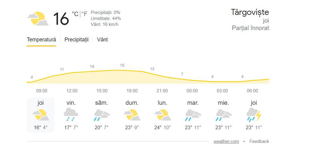 Prognoza meteo, 21 aprilie 2022, temperaturile maxime ale zilei se încadrează între 10-19 grade Celsius, în timp ce minimele se situează între -1-+8 grade Celsius.