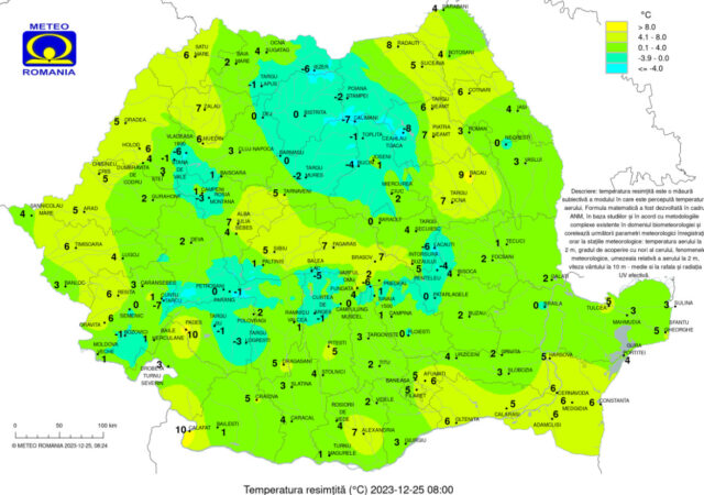 Prognoza meteo 25 decembrie 2023, vântul va continua să prezinte intensificări la munte, unde rafalele vor depăși 70…90 km/h, local în Transilvania, Maramureș, nordul Crișanei și nord-vestul Moldovei, în general cu viteze de 55…65 km/h și pe arii restrânse în rest.