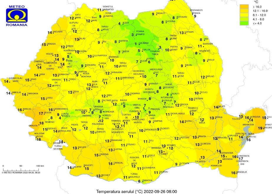 Prognoza meteo, 26 septembrie 2022, temperaturile continuă să crească și să se apropie de valorile normale pentru această perioadă a anului, mai puțin în estul și sud-estul țării.