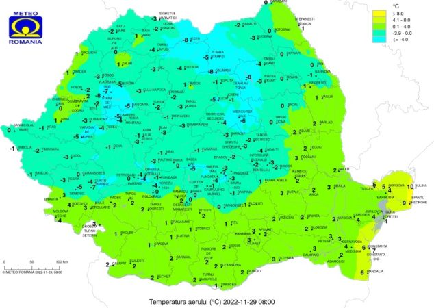 Prognoza meteo 29 noiembrie 2022, miercuri, în țară, cerul va fi noros în sud-vestul, sudul şi estul ţãrii, cu precipitaţii slabe, predominant sub formã de ploaie în Oltenia, local în Banat, în Muntenia şi izolat în Dobrogea, iar în Moldova pe arii restrânse mixte şi condiţii de polei. La munte pe alocuri se vor semnala ninsori slabe şi lapoviţã. În celelalte regiuni cerul va fi variabil, local cu ceaţã, mai ales dimineaţa şi noaptea. Vântul va sufla slab şi moderat, cu unele intensificãri în sudul Banatului şi pe alocuri în Oltenia, Muntenia şi Dobrogea. Temperaturile maxime se vor încadra între 1 şi 10 grade, iar cele minime, în general, între -3 şi 5 grade.