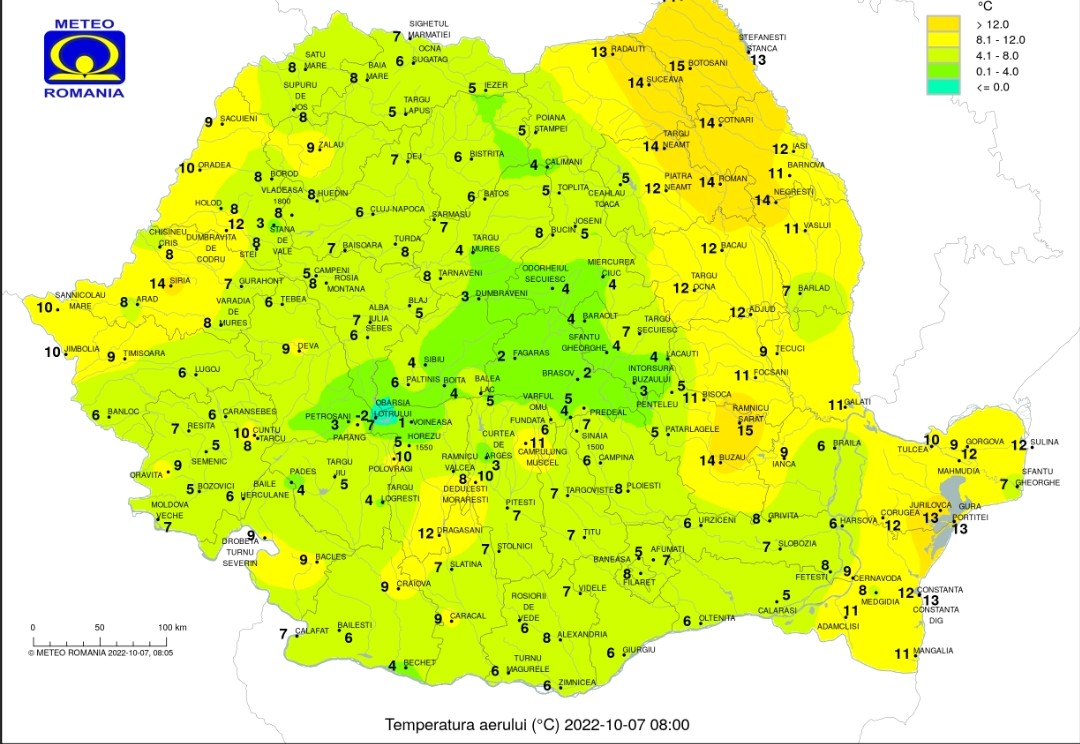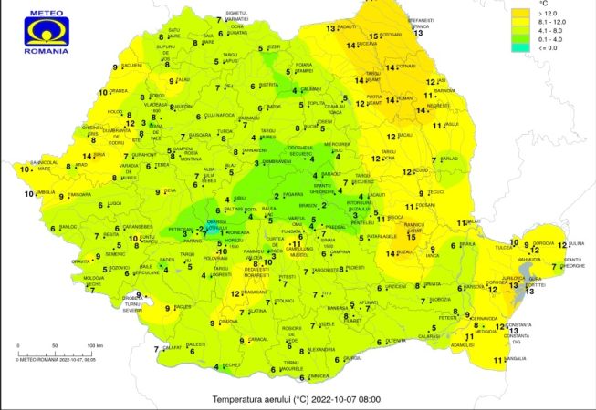 Prognoza meteo, 7 octombrie 2022, vântul va sufla slab şi moderat, cu uşoare intensificãri pe parcursul zilei în sudul Moldovei, în jumãtatea esticã a Munteniei şi local în Dobrogea, iar spre sfârşitul intervalului în sudul Banatului.