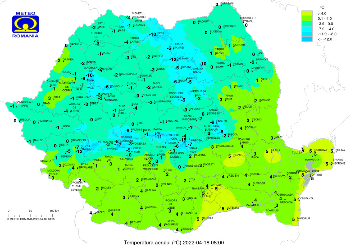 Luni, 18 aprilie 2022, temperatura maximă va atinge valoarea de 11 grade în București.
