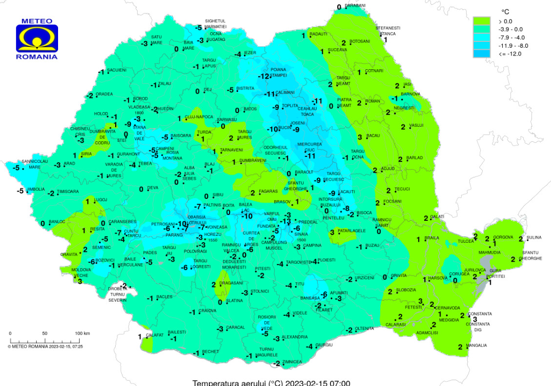 Prognoza meteo miercuri, 15 februarie 2023, temperaturile maxime se vor încadra, în general, între 1 şi 11 grade, iar cele minime se vor situa între -14 grade în estul Transilvaniei şi 1 grad în Dealurile de Vest.