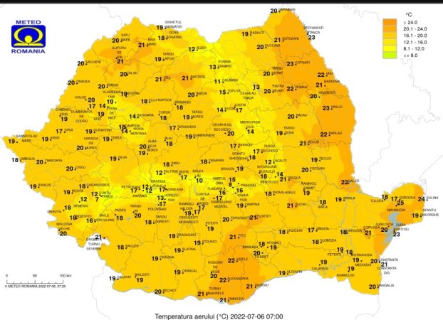 În restul teritoriului, vremea se va menține călduroasă, chiar caniculară la orele amiezii. Temperaturile ridicate vor provoca un disconfort termic accentuat, iar fenomenele de instabilitate atmosferică se vor semnala pe arii restrânse, fiind probabilitate mai mare să apară seara și noaptea.