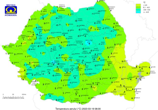Vântul va sufla slab şi moderat, cu uşoare intensificări pe crestele montane. Maximele se vor încadra în general între 10 şi 17 grade, iar cele minime între -2 şi 8 grade, mai scăzute în depresiunile din estul Transilvaniei pânã spre -5 grade.