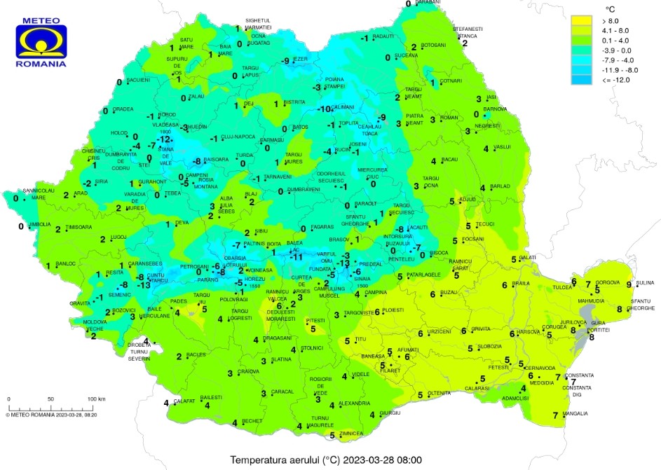 Prognoza meteo pentru 28 martie, temperaturile vor fi în scădere în aproape toată ţara, iar maximele se vor încadra între 2 şi 12 grade.